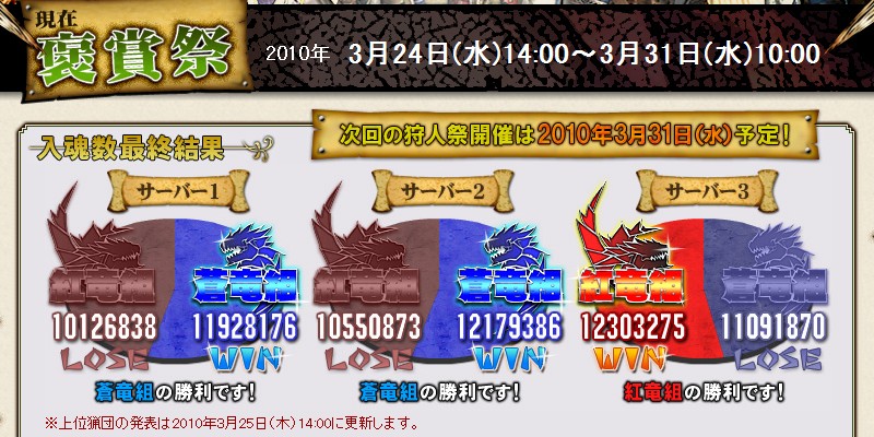んーと、勝ち組褒章が2倍、負け組褒章が通常勝ち組と同じ。