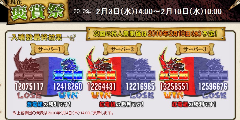 サーバー3じゃよく聞く話しだけど、サーバー1で大差って珍しいよね。