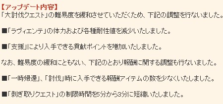 討伐後の剥ぎ取り時間も5分から3分に減らすってなってるしな。