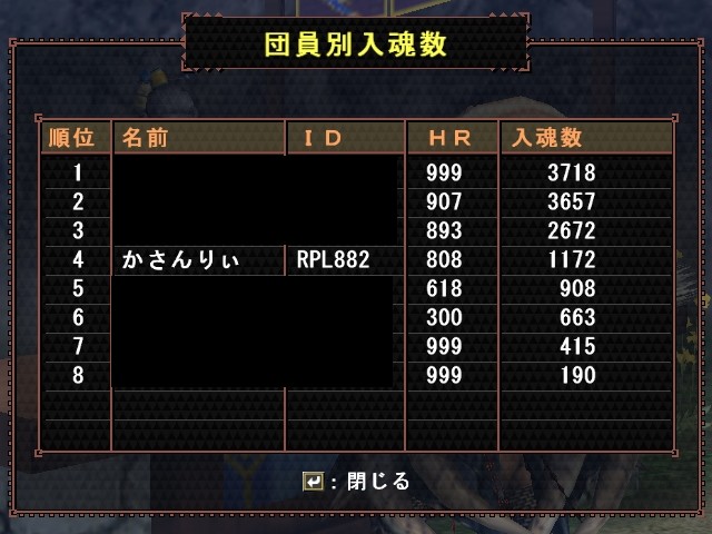 これだけじゃなんなので、うちの団の狩人祭の入魂数でも。