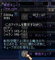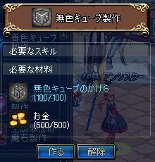 これは、無色キューブのかけら100個と500ゴールドで