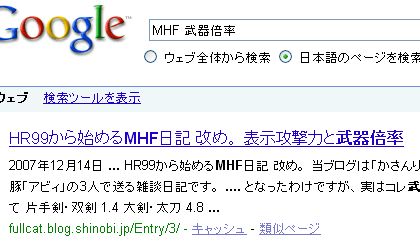 「MHF 武器倍率」 で検索した結果が…