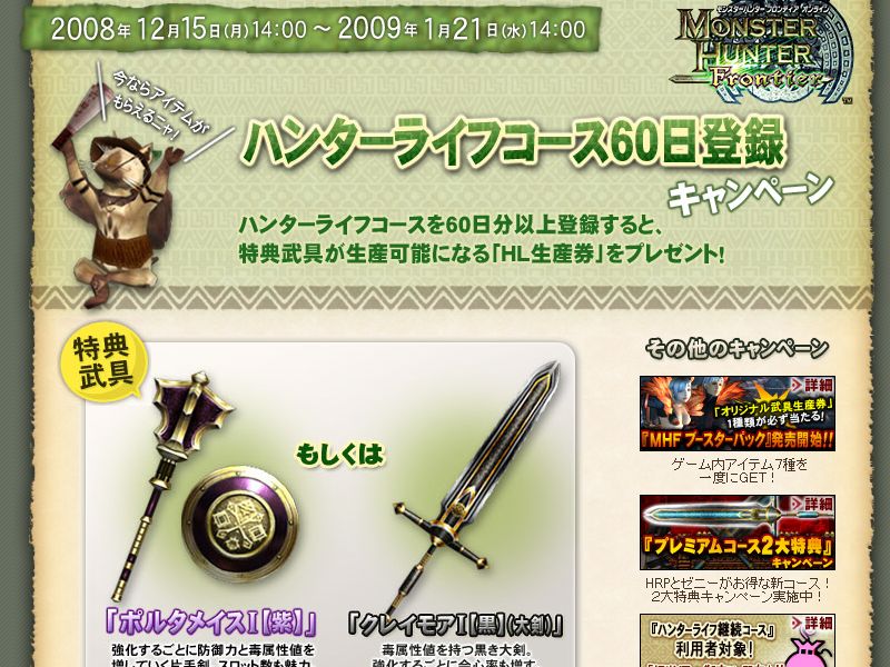 ハンターライフコースを60日以上登録すればもらえるってこと?