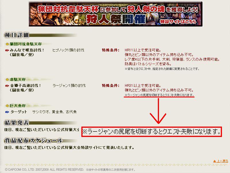 …あ、公式サイトで公式狩猟大会の告知が出てる。