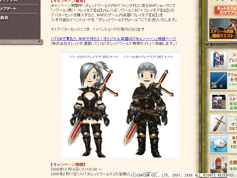 MHF用武器の 「クレイモア[紅]」 が手に入るようですよ?