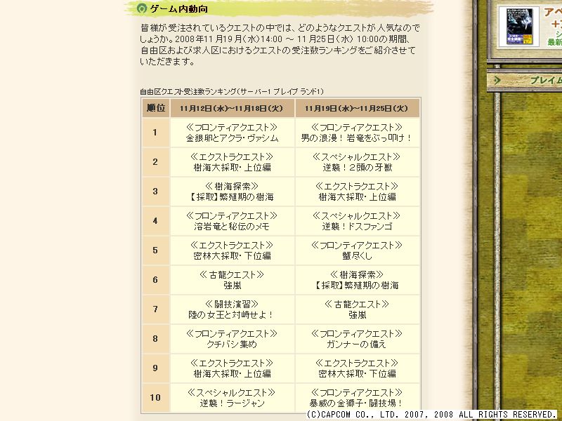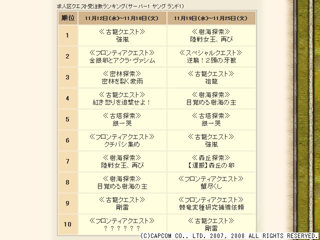 クエスト受注数ランキングなんてやったんだろうね。