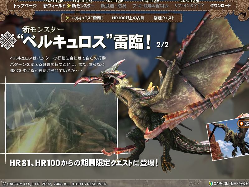 ベルキュロスはハンターの行動に合わせて自らの行動パターンを変える賢さをもつという。