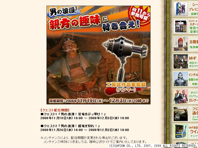 そのロマン武器を作るために嫌々クエストをやってきました。