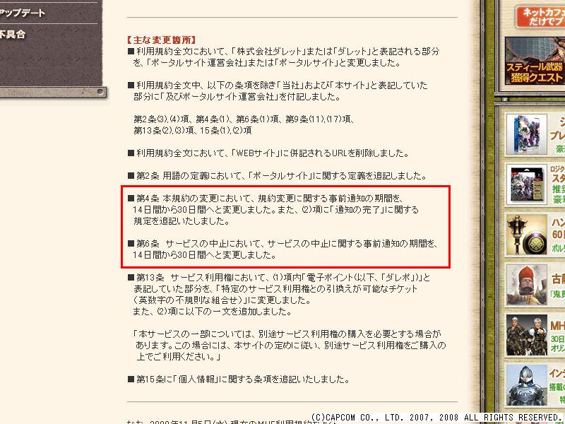 「11月19日からのMHF利用規約の一部変更について」