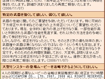 まぁ、「双剣そのものの下方修正してくれ」 ってのと、「片手剣の上方修正してくれ」 って話しが出てるみたいなので、狩猟笛1人と双剣3人の強要部屋みたいなのをどうにかしてくれって話しだとは思いますが。