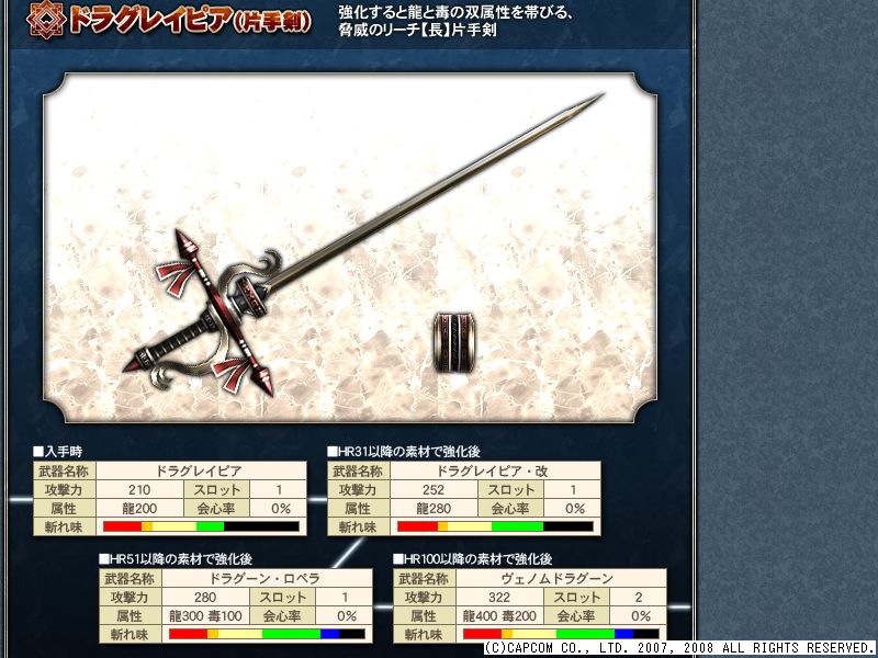 まず片手剣。 龍と毒の双属性とのことですが… いかに。