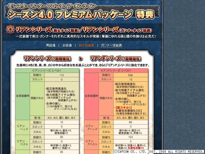ちなみに、ガンナー装備は