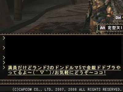 実際問題、片手剣が来て喜ばれる求人とかあまり無いですしねぇ… ランスとガンスも同じく。 うちは4人別々の武器でクエストに行くのが好きなので、色々な武器種の人が集まってくれると楽しいんですけどね。