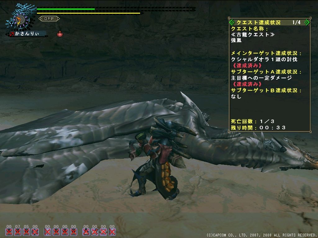 諦めてリタイアして狩ってきた。 古龍種の皮しか出なくてネタにもならなかったよ…