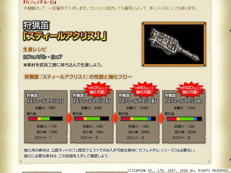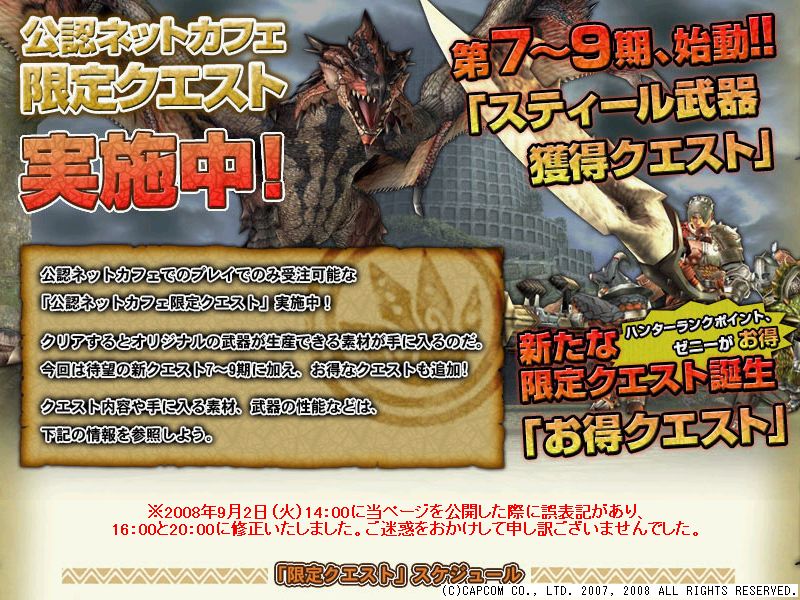 そんな公認ネットカフェ限定クエストの7期が開始されたということで、9期までの情報が公開されてますね。 大剣だけ2種類あってズルいです。 謎クエでも大剣だったのに。