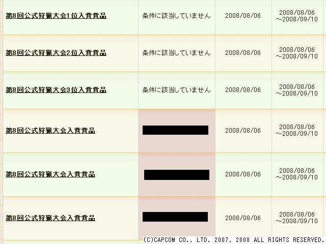第8回公式狩猟大会入賞賞品