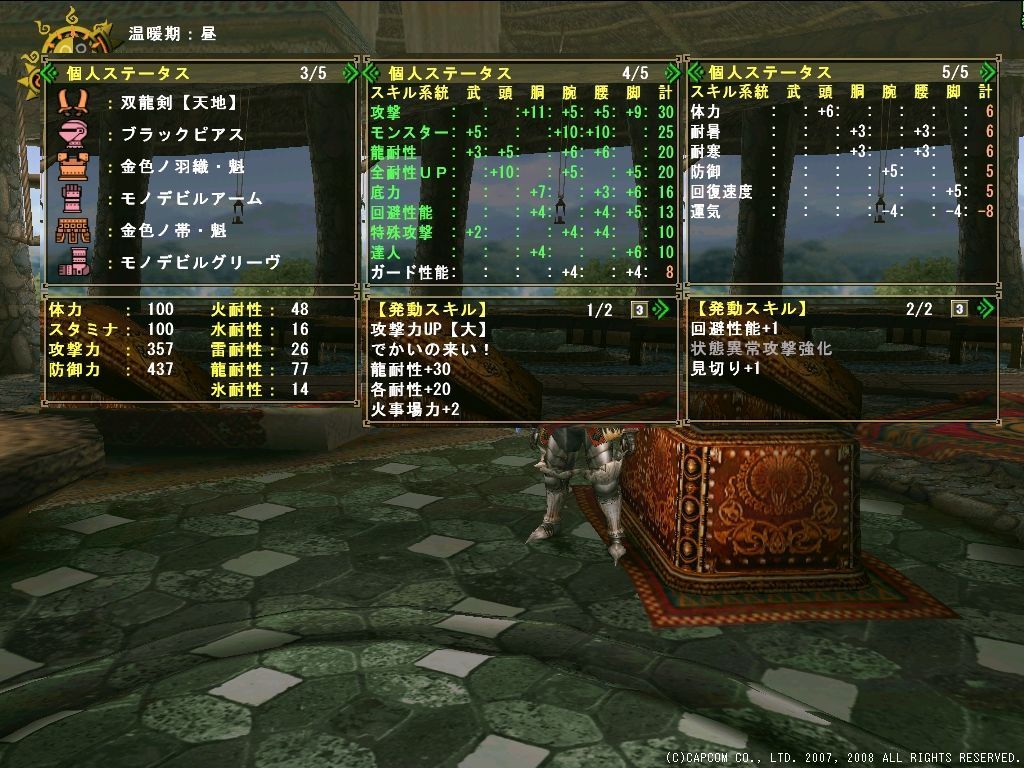 綺麗な装備と言えば、女性用防具は見た目の良いものが多いから装備を作る楽しみがありそうですが、男キャラを使ってる人としては装備の見た目が悪いので着飾る楽しみが無いんですよ…