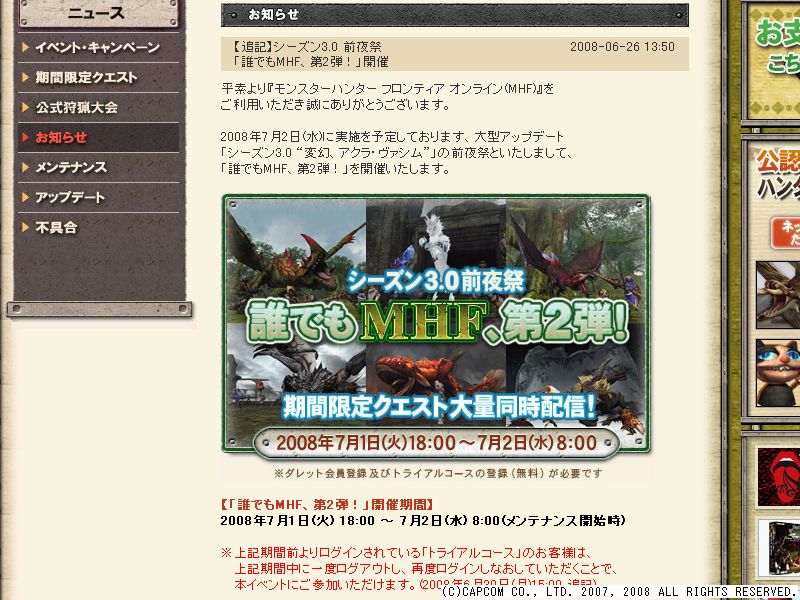 こんばんは。 シーズン3.0前夜祭の期間限定クエスト大量同時配信! っていうので期待してたのに、ほとんどクエストが増えてないってどういうことでしょうか。 期待してたアレもコレもありませんでした。