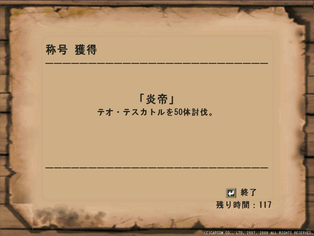 テオ・テスカトル50頭の討伐を達成しましたヾ(゚∀゚)ノシ