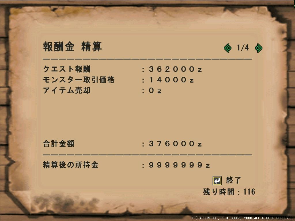 所持金がカンストしましたヾ(゚ω゚)ノシ