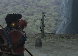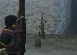 にょろっと伸びた石(?) の上のほうに、ちょこっと黒い物があるでしょ?