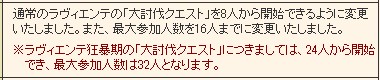 大討伐クエストに参加するための最低人数、24人から減ったみたいだね。