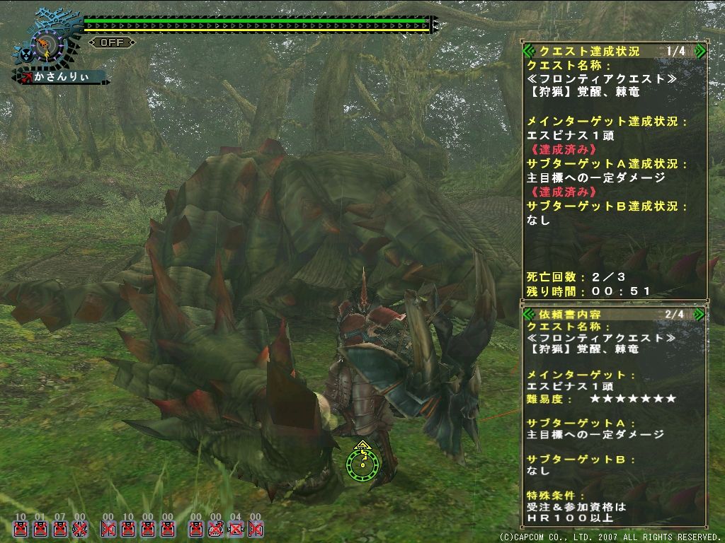 HR100エスピナス。2乙したから最後は火事場無し(つд`)