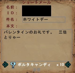 今日はホワイトデーなのでバレンタインイベントのお返しを…