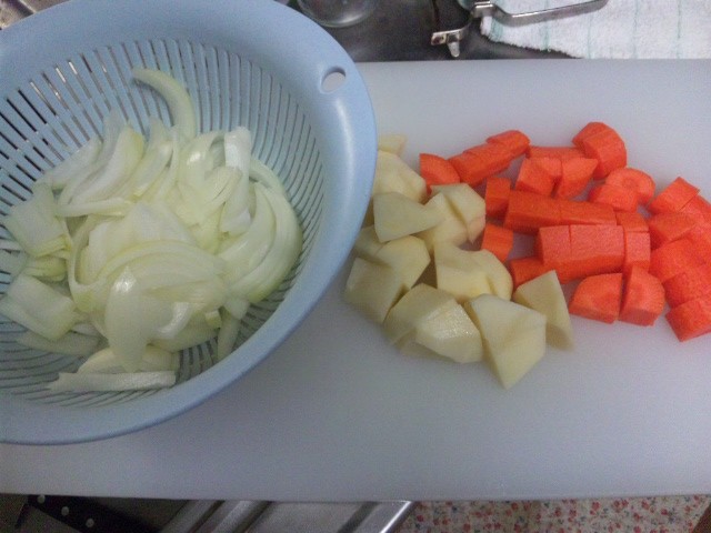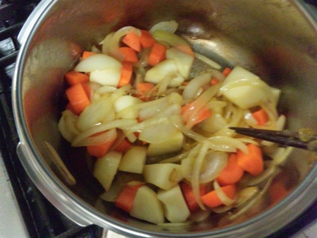 んじゃ次はニンジンとジャガイモを炒めてー。