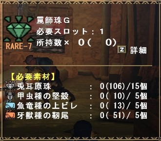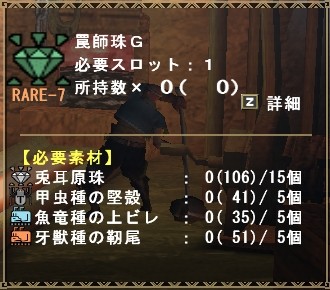 おしゃー! 罠師珠Gを7個生産する分の素材集まったー!