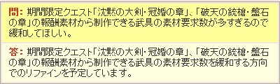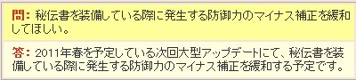 で、もう1つ。 秘伝書の防御力減少が緩和されるそうで。