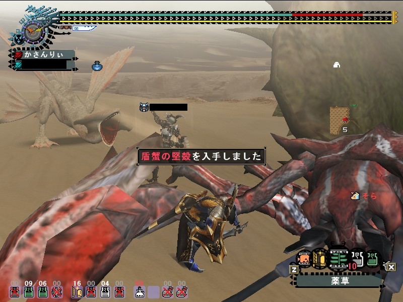 まったくだ。 今度ソロ狩り用の装備も作らなきゃだねぇ。