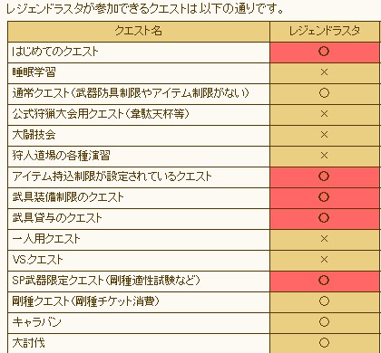 7. 通常のラスタは参加できない一部のクエストに、レジェンドラスタは参加することができます。