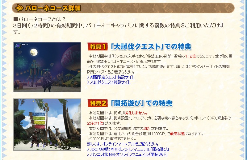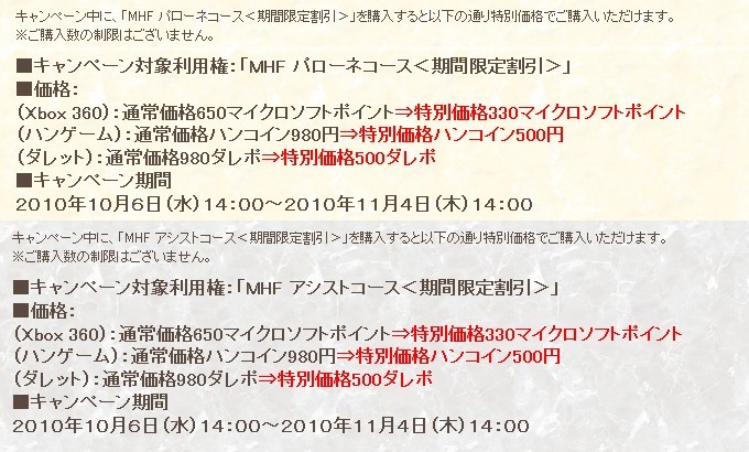 MHFの、明日から開始する新しい課金サービスの詳細が出ましたね。