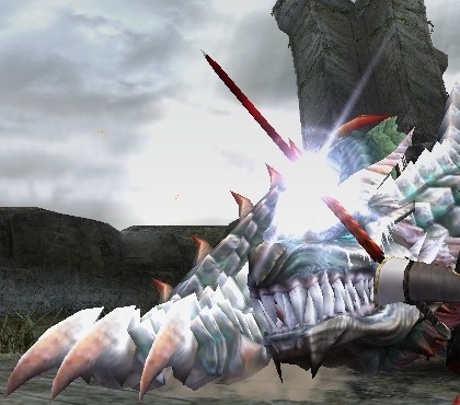 デュラガウアの突進に、攻撃が弾かれる瞬間です。